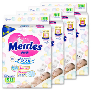 花王 メリーズ さらさらエアスルー テープSサイズ(4〜8kg) 82枚【お1人様4個まで】【別注文での複数購入不可】[メリーズ テープ おむつ・オムツ] (毎)