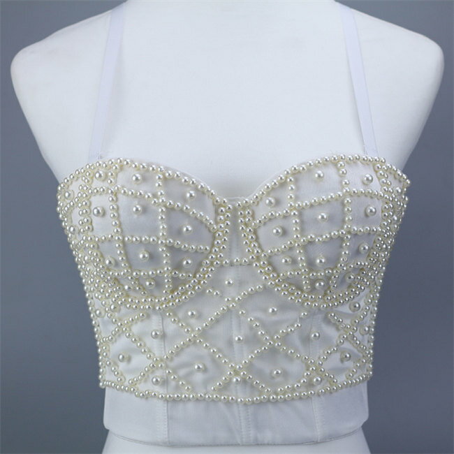 ブラック/ホワイト ビーズ チョッキ インナー キャミソール キャミ チューブトップ ヘソ出しトップス ダンス衣装 練習着 ヨガウェア ショート丈 へそ出し カップなし レディース ビスチェ おしゃれ シンプル かっこいい 演出舞台 ワイヤーあり ブラトップ カップ付き