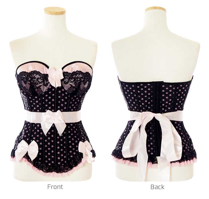 【全品20%OFFクーポン!期間限定!】コルセット 編み上げ ビスチェ ブラック×ピンクドット♪レーシーコルセット [sl5308]☆ゴスロリ◎くびれGet♪腰痛にも♪