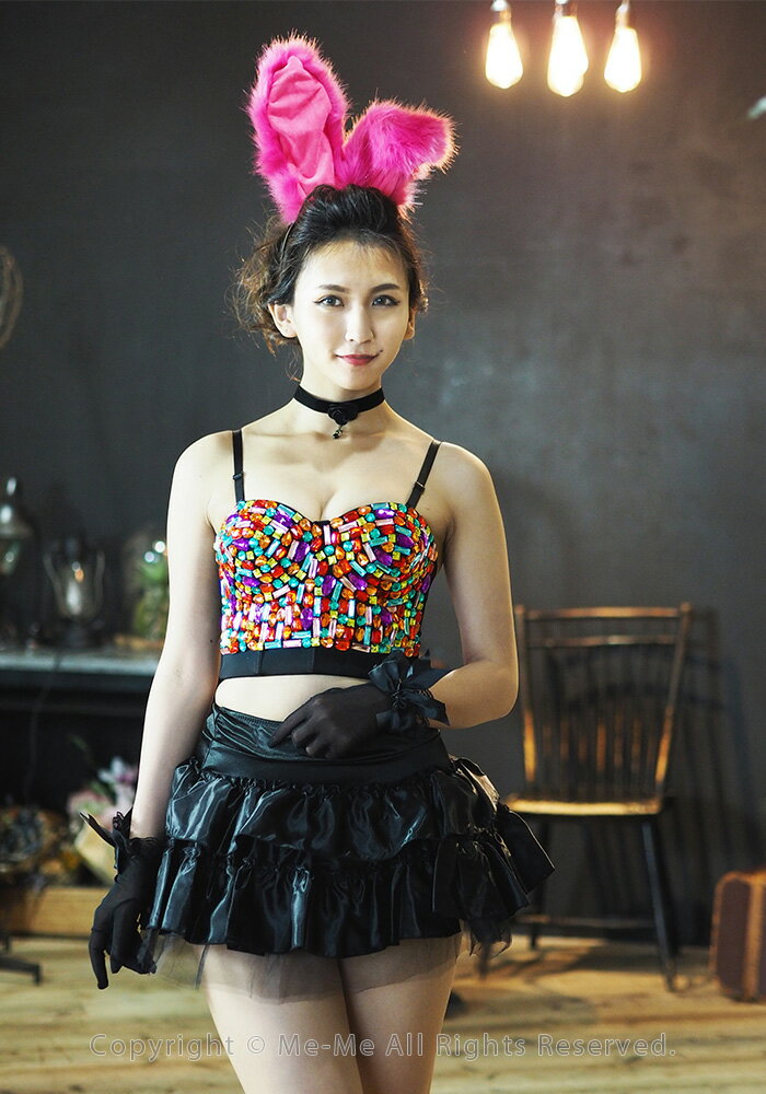 【全品20%OFFクーポン!期間限定!】ダンス衣装 ビスチェ バニーガールセット★うさ耳カチューシャ×ブラトップスビスチェ×スカート×しっぽ【送料無料】ダンス DANCE ステージ衣装 派手 ベリーダンス パンク ヒップホップ