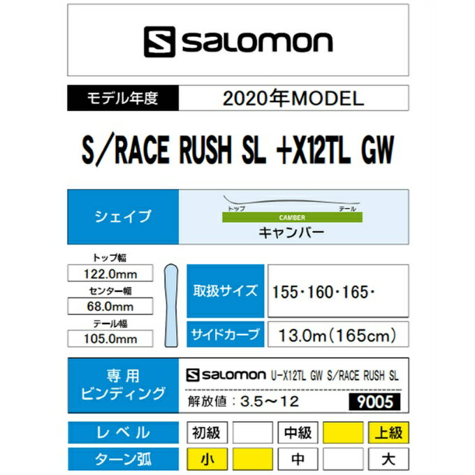 スムーズなターンを実現し、ハードバーンでも圧雪でもエッジを捉える高性能スピードモデル、S/RACE RUSH SL + X12 TL GW。