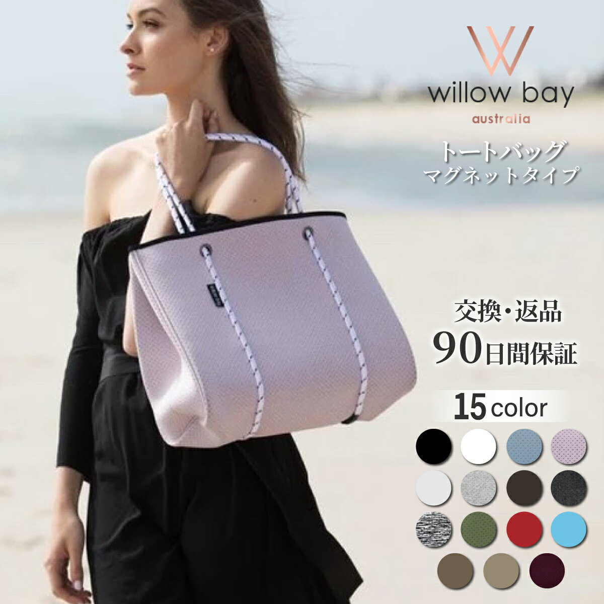 【日本公式販売店】ウィローベイ Willowbay マグネット ネオプレン トートバッグ レディースバッグ マザーズバッグ バッグ かばん 洗える 旅行バッグ A4サイズ ファスナー付き ポケット 大容量 マチあり プレゼント