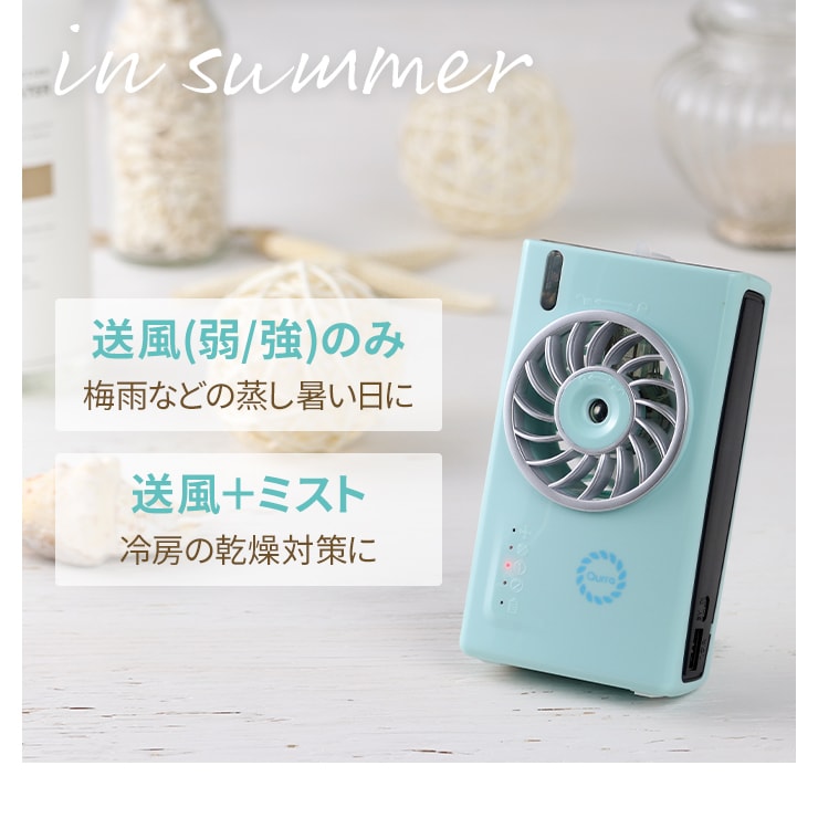 ファン 扇風機 せんぷうき 冷風扇 加湿器 ミストファン 持ち運び できる 充電式 usb 卓上 壁掛け 超音波 オフィス オシャレ かわいい 車 車用 携帯 コンパクト コードレス 小型 子供部屋 送料無料 小さい 充電 デスク ポータブル ミニ 加湿 器 かしつき 冷風機 クルラ Qurra