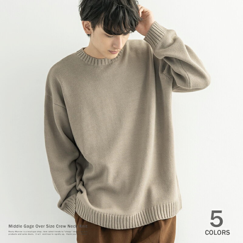 ニット メンズ レディース カジュアル 無地 シンプル セーター 5ゲージ プレゼント ギフト クリスマス クルーネック ビッグシルエット オーバーサイズ ロング ルーズ リラックス アクリル 9758