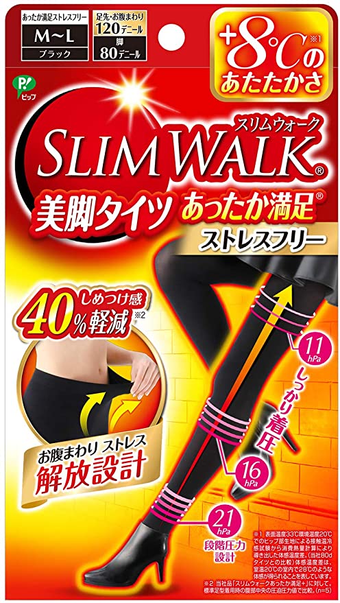 ピップ スリムウォーク (SLIM WALK) 美脚タイツ あったか満足 ストレスリー M~Lサイズ S~Mサイズ ブラック おそと用 SLIM WALK 着圧 タイツ ソックス 足 浮腫み むくみ ストッキング 美脚 美尻 矯正 ホット 冷え性 防寒 黒 ブラック